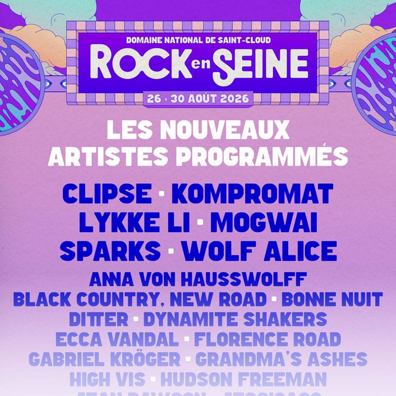 Du 26 au 30 août 2026 au Domaine national de Saint-Cloud, Rock en Seine vient de doubler son nombre d’artistes confirmés avec 29 nouveaux noms venus d’horizons très variés. Des mastodontes célébrissimes, des scènes émergentes internationales et une belle représentation française. Le cocktail est redoutable !