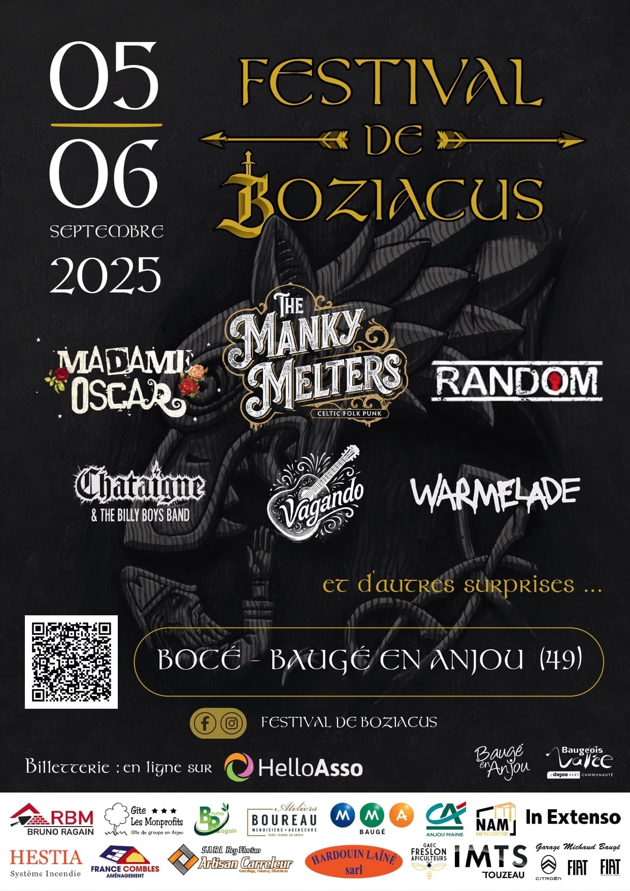 Situé au cœur de Baugé-en-Anjou, le Festival de Boziacus s’impose comme un rendez-vous à part dans le paysage des festivals de musique 2025. Porté par une équipe passionnée, il cultive une identité forte : une énergie rock assumée, des influences punk celtiques, une ambiance festive et intergénérationnelle, le tout dans un esprit profondément convivial. C’est un événement qui sent la liberté, l’authenticité, et où la musique se vit pleinement, sans chichis.