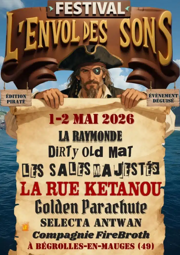 Pour cette édition 2026, le festival revient avec son Festival Pirate, clin d’œil assumé à un format qui a marqué les précédentes années. Cette fois, la proposition se déploie sous chapiteau à Bégrolles-en-Mauges, offrant un cadre propice à la proximité entre artistes et public. Le lieu, ancré dans son territoire, renforce cette impression de festival à taille humaine, où chaque spectateur trouve facilement sa place. L’Envol des Sons n’est pas un événement hors-sol : il s’inscrit dans son environnement et s’adresse autant aux habitués qu’aux curieux de passage.