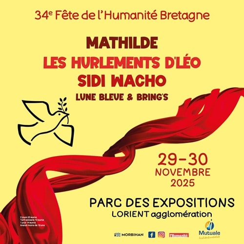 Chaque année, la Fête de l’Humanité Bretagne rassemble à Lorient celles et ceux qui aiment la musique, les rencontres et les idées qui bougent. En 2025, le rendez-vous est fixé les 29 et 30 novembre, pour deux jours de concerts, d’échanges et d’énergie collective. C’est un moment à part dans le paysage des festivals de musique 2025 : un événement engagé, festif et chaleureux, où l’on vient autant pour chanter ensemble que pour partager une vision du monde plus solidaire.