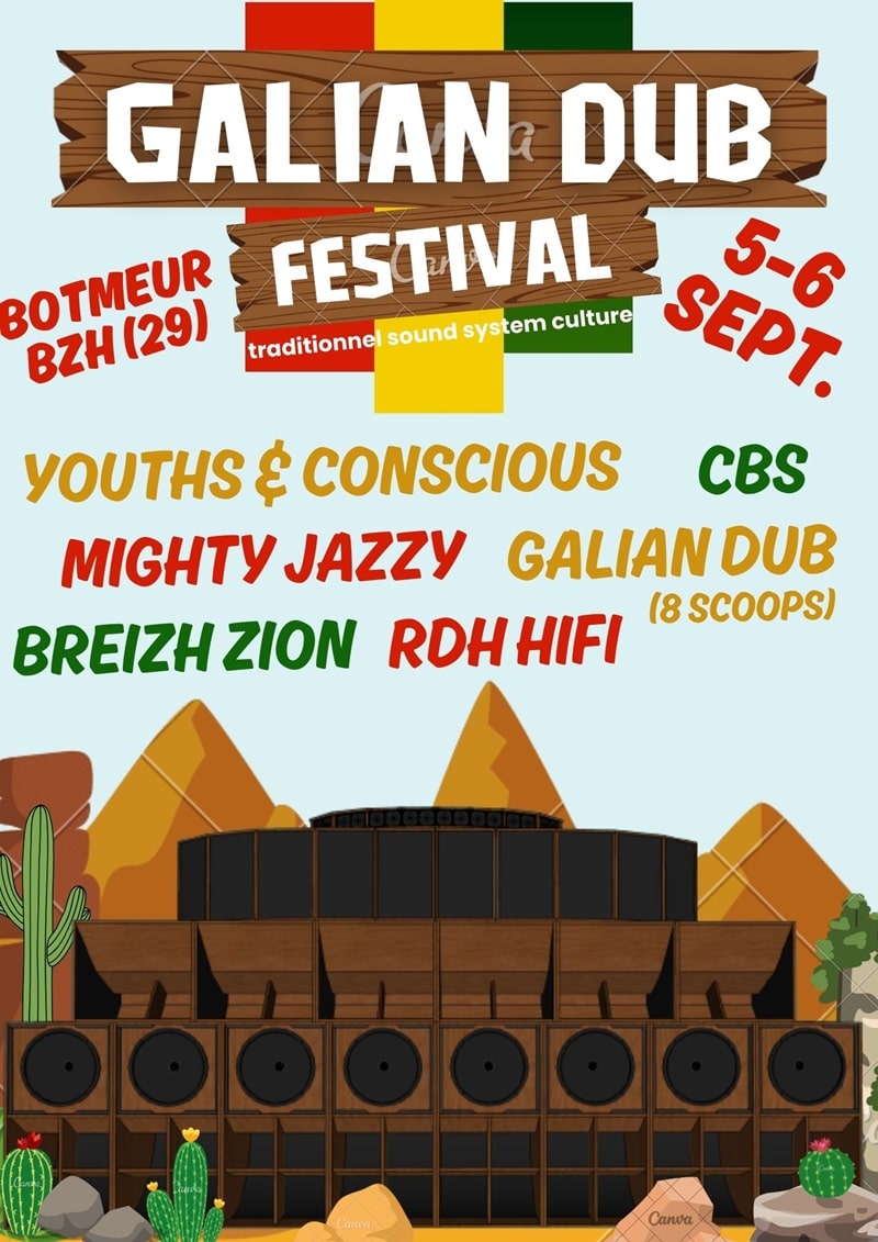 Pour l’édition 2025, la programmation confirme l’ancrage du festival dans la scène dub indépendante et militante. Galian Dub, fer de lance du projet, montera sur scène avec RDH HiFi, un sound system bien connu des amateurs, qui envoie du son comme on en entend rarement. Mighty Jazz viendra y poser ses sélections toujours précises, et Youth & Conscious apportera sa touche roots et consciente, fidèle à son nom. Breizh Zion et CBS complètent l’affiche avec une vraie identité musicale, entre culture sound system et vibes locales. Une programmation courte mais solide, pensée pour créer un fil rouge entre les artistes, dans une ambiance posée et puissante.