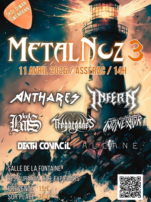 Le rendez-vous musical réunit cette année sept formations qui couvrent un spectre large des musiques metal et extrêmes, des sonorités death aux atmosphères plus atmosphériques, en passant par le thrash, le black et le metal alternatif. Chaque groupe apporte son univers propre, sa manière d’habiter la scène et de créer une connexion directe avec le public. C’est précisément cette diversité de propositions qui donne au Metal Noz sa cohérence : non pas un événement monolithique, mais une programmation construite comme un voyage, d’une intensité à l’autre.